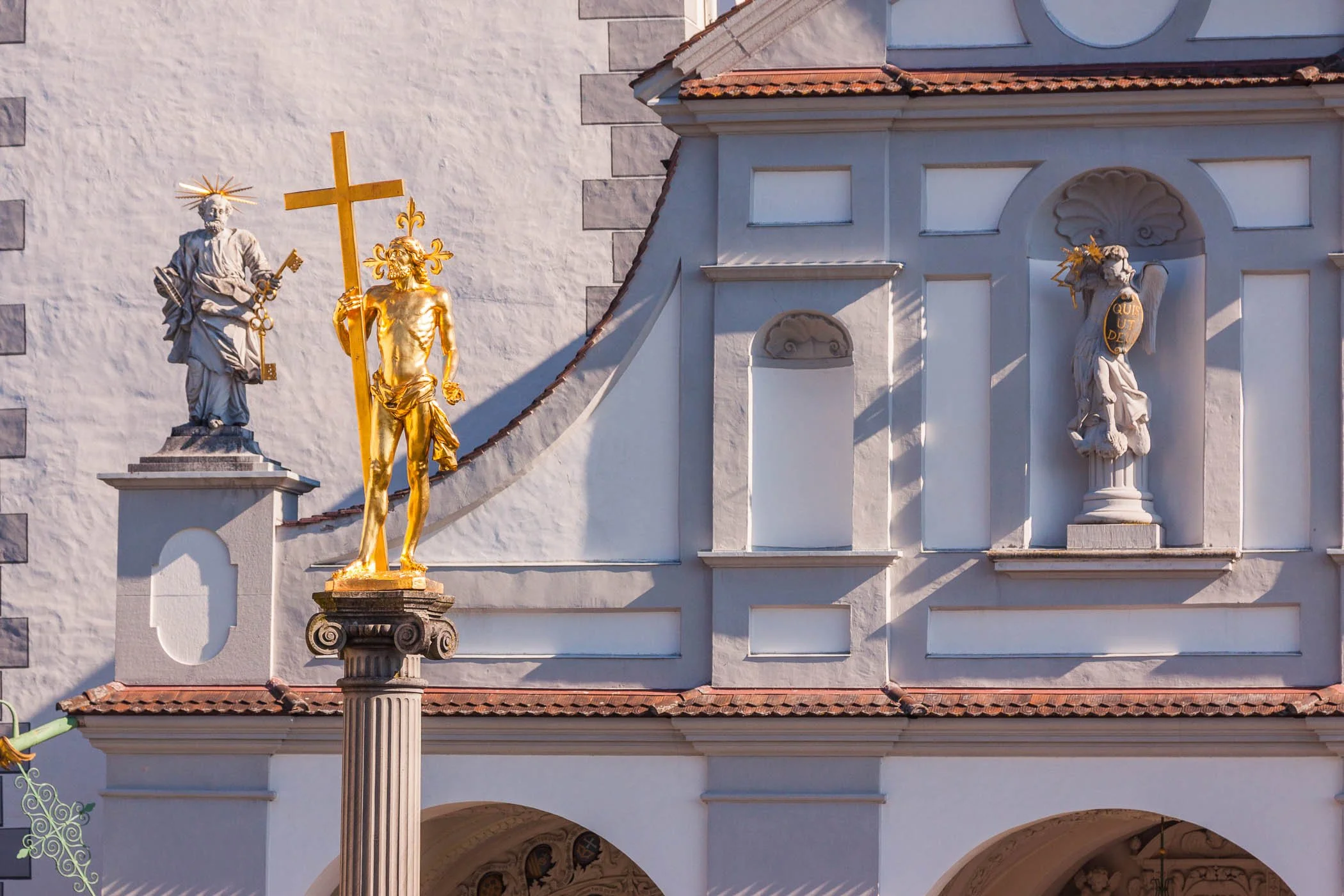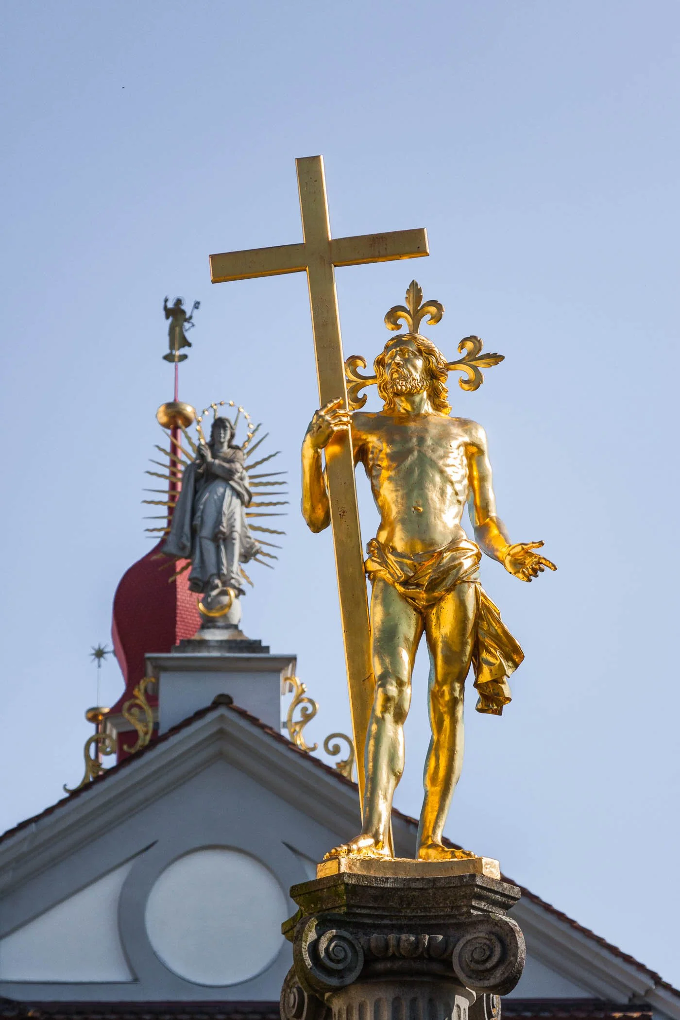 The interior of the church is beautifully decorated in the Baroque style. Wonderful artworks adorn the ceilings that are supported by beautifully sculpted alters and columns. There is also a beautifully decorated Baptism altar, sculpted with gold leaf created by Propst Christoph Dürler in the year 1778. All this adds to the richness of the interior of the churches design and appeal.